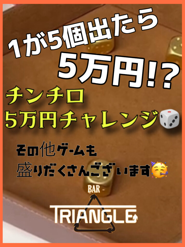 トライアングルでは、チンチロ5万円チャレンジを行っております!!